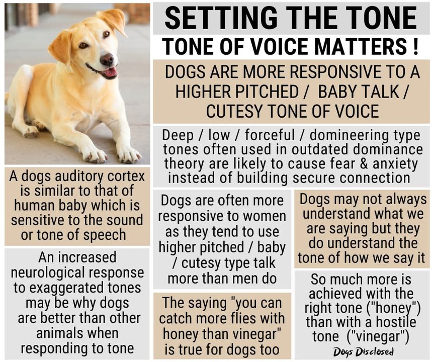 SETTING THE TONE The tone of voice we use when speaking to a dog matters! When someone is talking to us or asking us to do something, are we more likely to respond and want to connect with them if they’re using a specific type of tone than if their See more