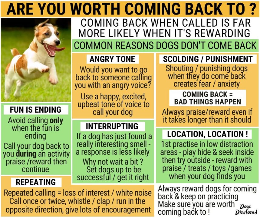 ARE YOU WORTH COMING BACK TO? I’m often horrified when I watch people trying to get their dogs to come back to them when they call. They call and call and get increasingly angry and frustrated as their dog keeps ignoring them. When their dog eventually comes back, or has See more