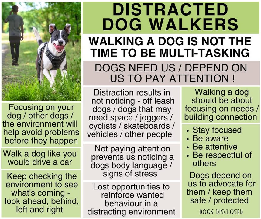 DISTRACTED DOG WALKERS The distracted dog walker is commonly seen chatting on their cell phone, wearing headphones or socializing with other people while oblivious to what their dog is doing, how their dog is feeling or what is going on in the environment. This may not sound like a problem, See more